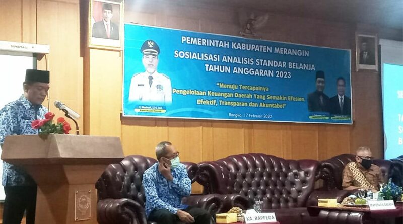 Read MoreBangko, Mediator Sekda Merangin Fajarman membuka acara sosialisasi Analisis Standar Belanja (ASB) tahun anggaran 2023, yang dikuti para Kasubbag Program