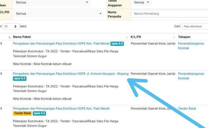 Read More• Penawar 0,56% Kalahkan 3 Perusahaan di Atas 10% dari Nilai HPS Jambi, Mediator Hasil Evaluasi pada laman websit LPSE