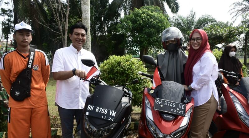 Bupati Fadhil Pasangkan Bendera di Kendaraan Milenial