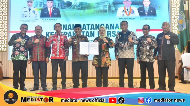 Read MoreJambi, Mediator Pemerintah Kota (Pemkot) Jambi melakukan Penandatanganan Kesepakatan Bersama antar daerah dengan Pemerintah Kabupaten (Pemkab) Merangin Tentang Penyelenggaraan Pemerintah
