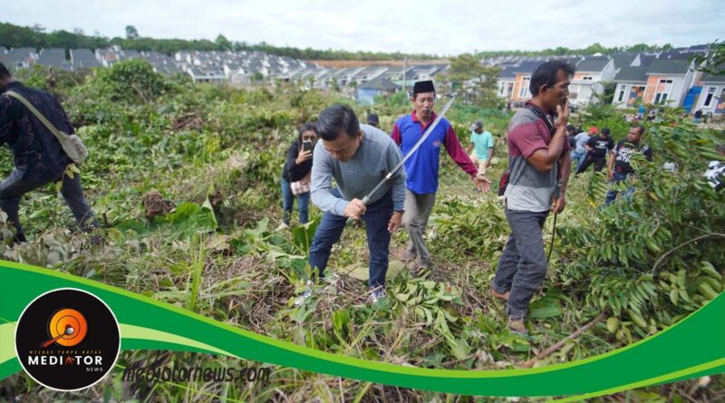 Al Haris ikut Gontong Royong membersihkan lahan yang direncanakan warga agar dibangun sekolah menengah pertama (SMP) dan fasilitas umum lainnya di kawasan tersebut.
