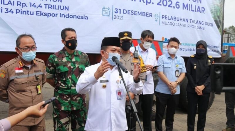 Gubernur Jambi Dr.H.Al Haris,S.Sos.,M.H., melepas ekspor komoditi pertanian Provinsi Jambi dengan total nilai Rp.202,6 miliar. Pelaksanaan pelepasan ekspor ini dalam rangka Pelepasan Gebyar Ekspor Tahun 2021, bertempat di Pelabuhan Talang Duku Jambi