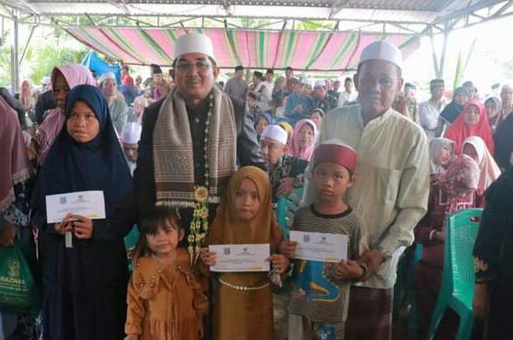 Dilanjutkan dengan penyerahan bantuan Mushab Alquran, Bantuan dari Baznas sebesar Rp. 5.000.000, Selain itu Bupati juga memberikan santunan kepada Anak Yatim dan Lansia.
