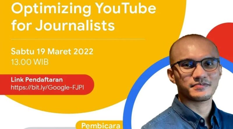 Untuk menambah kemampuan para Jurnalis menggunakan Youtube dalam melakukan pekerjaan sehari-hari, Forum Jurnalis Perempuan Indonesia (FJPI) bekerjasama dengan Google News Initiative, mengadakan Workshop, dengan Tajuk “Optimizing YouTube for Journalists”, Sabtu (19/3/2022), Pukul 13.00-15.00 WIB.