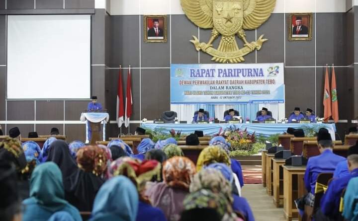 Pj. Bupati Tebo H. Aspan S.T. mengikuti Rapat Paripurna DPRD Kabupaten Tebo dalam rangka memperingati Hari Ulang Tahun Kabupaten Tebo yang Ke-23 Tahun,di Aula Utama Kantor DPRD, Rabu (12/10/2022).