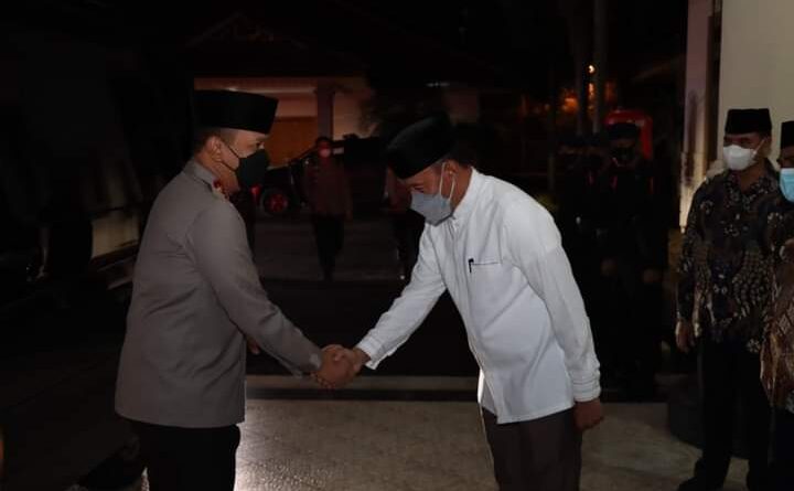 Bupati Tebo Dr. H. Sukandar, S.Kom, M.Si didampingi Wabup Syahlan, SH dan Forkompinda menyambut kunjungan kerja sehari Kapolda Jambi Irjen Pol. Albertus Rahmat Wibowo, di rumah Dinas Bupati, Rabu sore (27/4/2022).