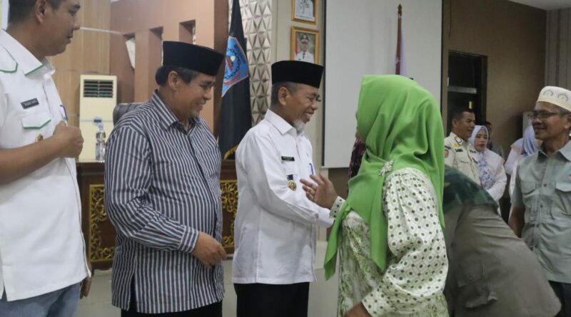 Bupati Merangin H Mashuri dan Wabup Nilwan Yahya, menghadiri halal bihalal dan menyaksikan pengukuhan pengurus Persatuan keluarga Sarolangun (Perkasa) Kabupaten Merangin, di Ruang pola utama kantor lama bupati, Rabu (10/5/2023).