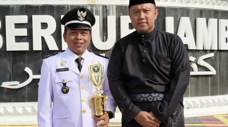 Kepala Desa Beringin Sanggul, Zuhdi, hadir langsung menerima penghargaan tersebut dari tangan orang nomor satu di Provinsi Jambi.