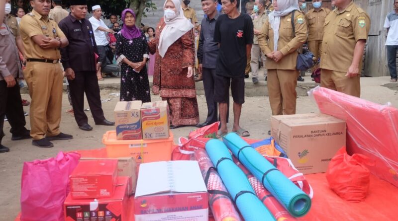 Bupati Hj. Masnah meninjau langsung rumah warga Pulau Kayu Aro, dan memberikan bantuan berupa sembako, peralatan tidur, masak dan uang tunai kepada Edi korban kebakaran.