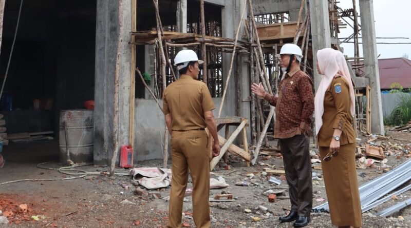 Bupati Merangin H Mashuri melakukan pemantauan terhadap pelaksanaan pembangunan Kantor Arsip dan Perpustakaan (Arsipus) Merangin, di belakang Perpustakaan Kabupaten Merangin kawasan Pematang Kandis Bangko, Selasa (8/8).