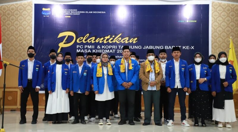 Bupati Tanjung Jabung Barat Drs. H. Anwar Sadat, M. Ag menghadiri acara pelantikan PC PMII dan KOPRI Tanjung Jabung Barat ke – X Masa Khidmat 2022 sekaligus Talkshow Bertemakan Media Digital dan Sumber Daya Manusia “Great Leaders in The Millenial Era”, Selasa (01/02/2022).