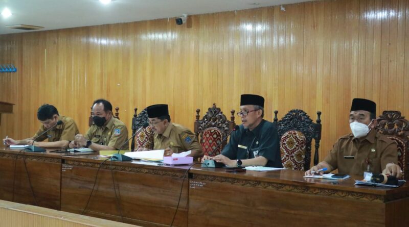 Bupati Tanjung Jabung Barat Drs. H. Anwar Sadat, M. Ag pimpin rapat evaluasi Laporan Pelaksanaan Program Kerja (LPPK) OPD yang diselenggarakan di ruang pola atas kantor Bupati. Selasa (10/05).