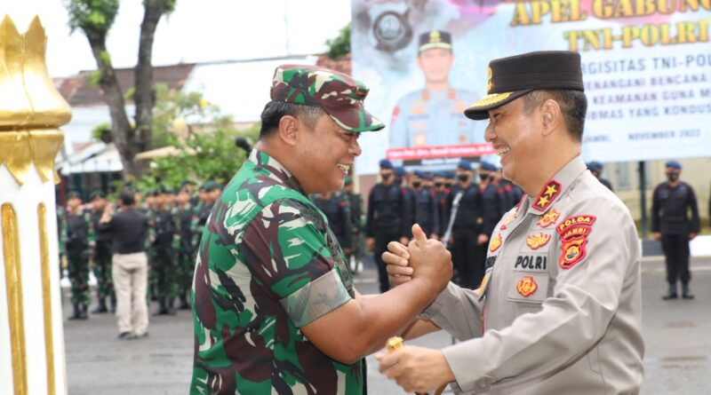 Kepolisian Daerah Jambi bersama Korem/042 Gapu melaksanakan apel gabungan di lapangan hitam Polda Jambi pada Kamis (03/11/2022).