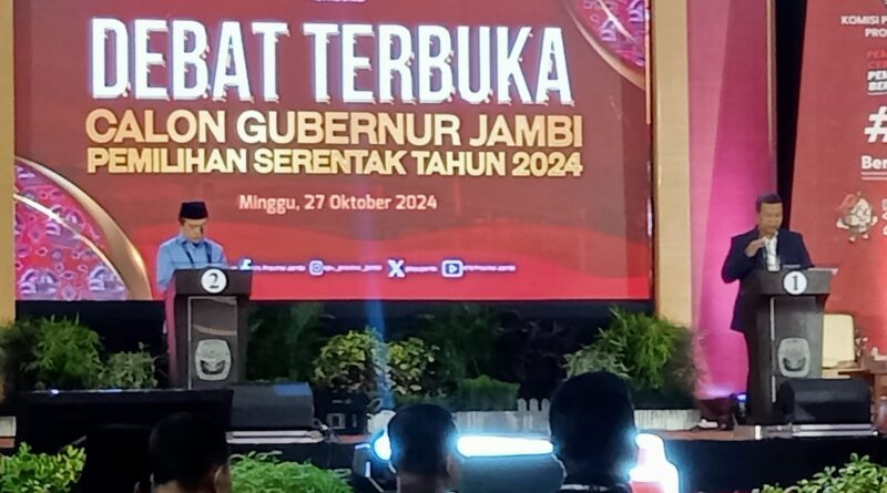 Debat kandidat Calon Gubernur (Cagub) Jambi dilaksanakan malam ini, Minggu (27/10/2024), di Abadi Convention Center (ACC).