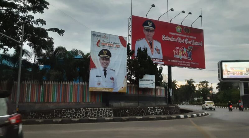 Di Kendari Puluhan Baliho Kepala Daerah Sambut Kedatangan Peserta HPN 2022