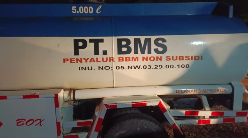 Dalam penggerebekan tersebut, petugas menemukan 4 mobil tangki BBM Non Subsidi jenis Solar dari PT. Bunga Mandiri Sejahtera (BMS) sedang melakukan transfer minyak ke kapal Tugboat.