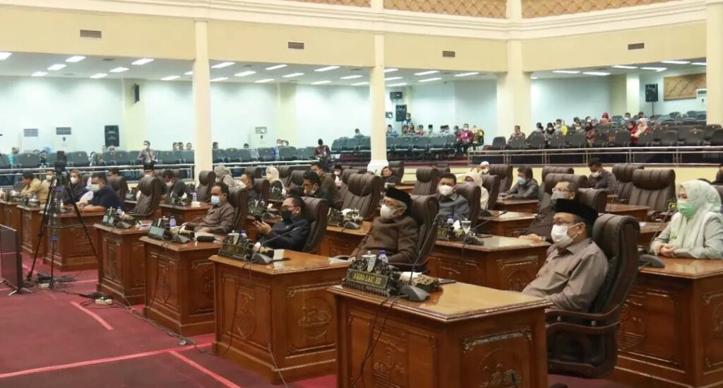 DPRD Kota Jambi menggelar rapat paripurna dengan agenda Penyampaian Jawaban Eksekutif atas Pandangan Umum Fraksi-fraksi DPRD Kota Jambi terhadap Laporan Keterangan Pertanggungjawaban (LKPJ) Walikota Jambi tahun 2021 bertempat di ruang Swarnabhumi, Kamis (31/03/2022).