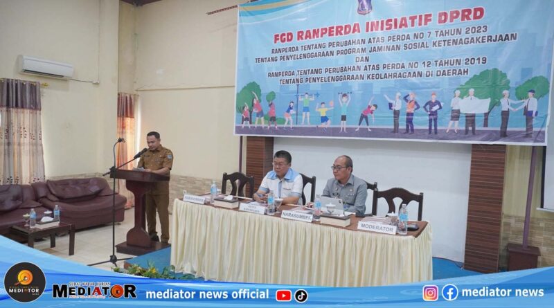 Dewan Perwakilan Rakyat Daerah (DPRD) Kabupaten Tanjung Jabung Barat menggelar Fokus Group Discussion (FGD) Ranperda Inisiatif DPRD, Ranperda tentang perubahan atas perda No 7 tahun 2023 tentang Penyelenggaraan Program Jaminan Sosial Ketenagakerjaan dan Ranperda tentang Perubahan atas Perda No 12 tahun 2019 tentang Penyelenggaraan Keolahragaan di Daerah.