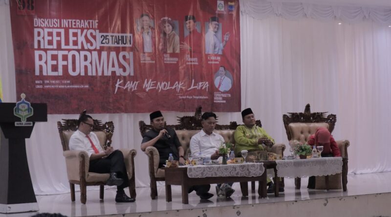 Ketua DPRD Provinsi Jambi Edi Purwanto menjadi narasumber dalam diskusi interaktif Refleksi 25 Tahun Reformasi yang dilaksanakan di Kampus Institut Agama Islam Muhammad Azim Jambi, Senin (15/5/2023).