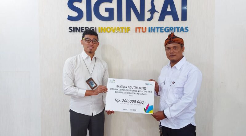 PLN UP3 Jambi menyerahkan bantuan Program Tanggung Jawab Sosial dan Lingkungan (CSR) berupa sarana dan prasarana pendukung untuk pedagang kaki lima (PKL) di kawasan Tugu Keris Siginjai, Kota Jambi.