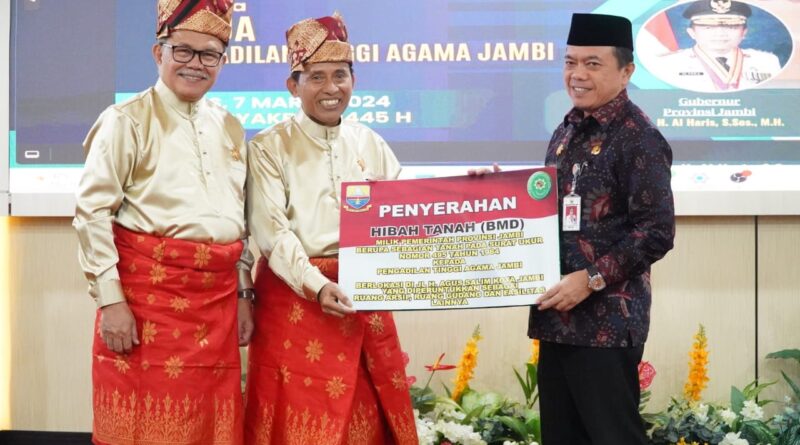 Hal tersebut dikemukakan Gubernur saat Penandatanganan Memorandum of Understanding (MoU) Pengadilan Tinggi Agama Jambi dengan Lembaga Adat Melayu Jambi sekaligus Pemberian Anggota Kehormatan Adat Lembaga Adat Melayu (LAM) Provinsi Jambi kepada Dr. Drs. H. Amran Suadi, S.H., M.H., M.Hum selaku Ketua Kamar Agama Mahkamah Agung RI dan Dr. Abd. Hakim, M.H.I selaku Ketua Pengadilan Tinggi Agama Jambi, serta penyerahan hibah tanah milik Pemerintah Provinsi Jambi kepada Pengadilan Tinggi Agama Jambi oleh Gubernur Jambi, bertempat di Aula I Pengadilan Tinggi Agama Jambi, Kota Baru Jambi, Kamis (07/03/2024).