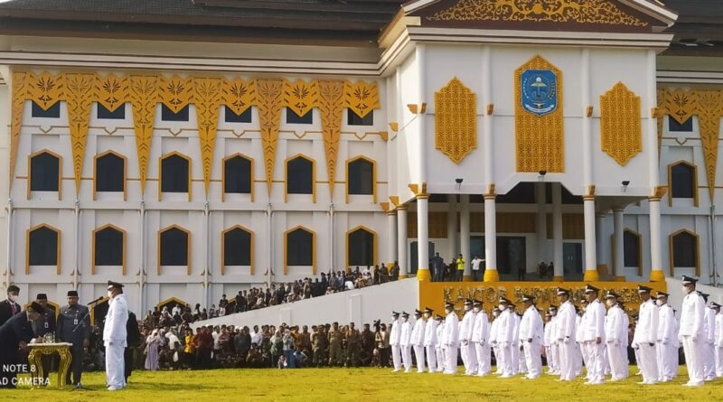 Sebanyak 169 orang kepala desa (Kades) yang baru dilantik Bupati Merangin H Masahuri di lapangan kantor baru bupati Merangin, Selasa (14/6/2022).