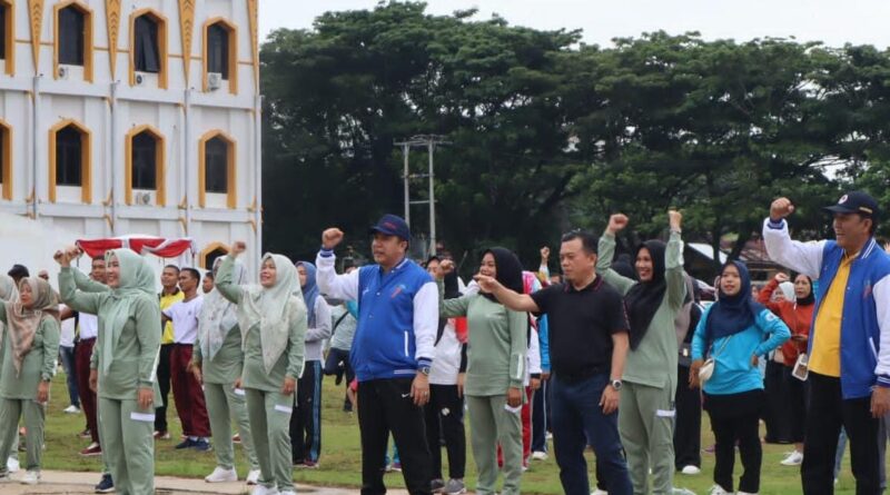 Pj Bupati Merangin H Mukti menggelar Senam Merangin Sehat. Acara yang dihadiri ribuan Aparatur Sipil Negara (ASN) tersebut, dibuka Gubernur Jambi H Al Haris di halaman depan kantor baru bupati Merangin, Jumat (19/1).