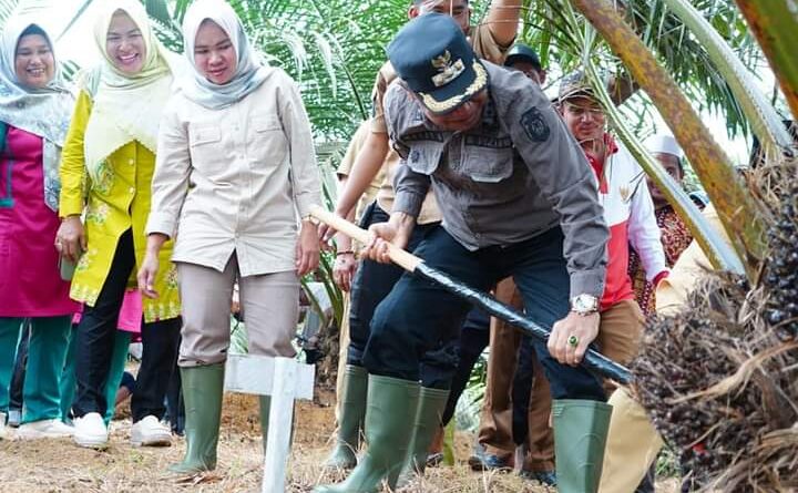 Panen perdana yang diikuti oleh sejumlah OPD dan masyarakat setempat ini berlokasi di tanah kas desa yang dimanfaatkan untuk perkebunan kelapa sawit.