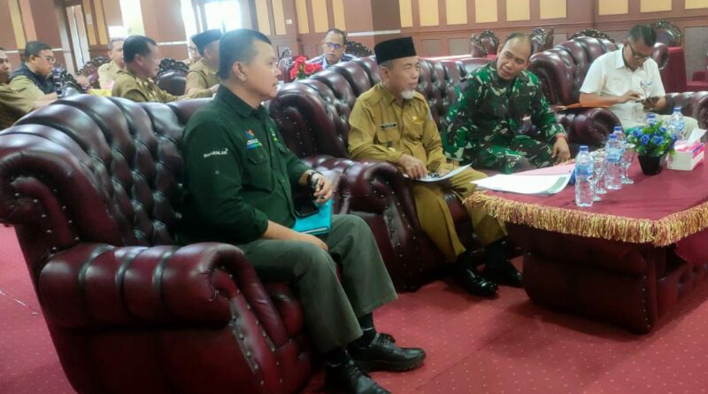 Bupati Merangin H Mashuri bersama Forkopimda Merangin, mengikuti rapat koordinasi nasional (Rakornas) secara zoom meeting, dari Aula Bappeda Merangin, Selasa sore (31/1/2023).