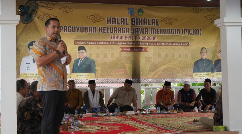 Bupati Merangin, M. Syukur menghadiri acara Halal Bihalal dan Syawalan 1447 Hijriah yang digelar oleh Paguyuban Keluarga Jawa Merangin (PKJM) di Pendopo Rumah Dinas Wakil Bupati Merangin, Sabtu (18/04).