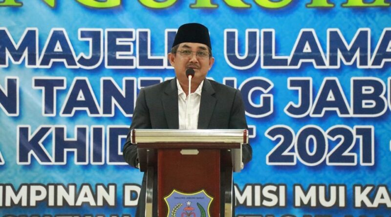 Ketua Umum MUI Tanjung Jabung Barat Prof. Dr. H. Ahmad Syukri Saleh, M.A. yang baru saja dilantik menyampaikan kepada pengurus MUI Tanjab Barat untuk mempersiapkan diri menjadi mitra pemerintah dalam menjaga, melindungi, serta memberikan pelayanan kepada masyarakat.