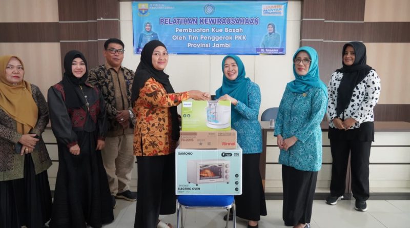 Hal ini disampaikan Hj. Hesti Haris sekaligus menyerahkan 15 Paket Bantuan terdiri dari Mixer, Oven dan Kompor pada kegiatan pelatihan keterampilan pembuatan kue basah di Balai Latihan Koperasi (Balatkop) Kota Jambi, Selasa (02/09/2025).