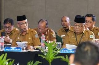 Rakor bertema ‘Penguatan Komitmen Sinergi dan Kolaborasi TPID untuk Menjaga Stabilitas Pasokan dan Harga Pangan’ itu, dipimpin Gubernur Jambi H A Haris. Pada kesempatan itu Gubernur menekankan pentingnya menjaga stabilitas harga pangan.