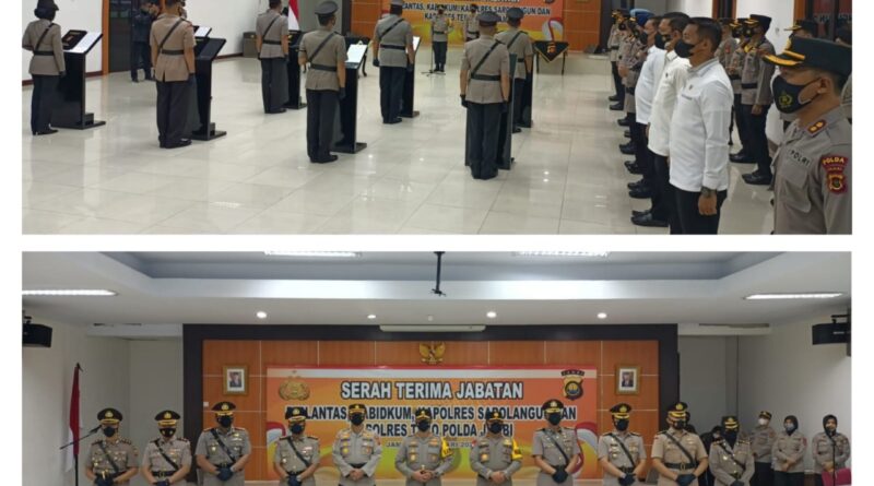 Berdasarkan Surat Telegram Kapolri Nomor ST/2570/XII/KEP/2021 tertanggal 17 Desember 2021 dan hari ini dilaksanakan sertijab empat Perwira yakni, Dirlantas Polda Jambi, Kabidkum Polda Jambi, Kapolres Tebo dan Kapolres Sarolangun.