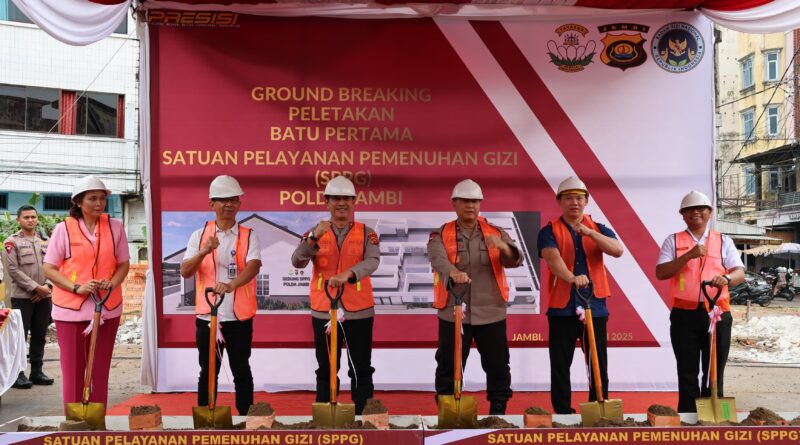 Kapolresta Jambi Kombes Pol Boy Sutan Binanga Siregar, S.I.K.,M.H, didampingi Ketua Bhayangkari Cabang Kota Jambi Ny. Fifi Boy Siregar, dan Kabag Ops Kompol Army Sevtiansyah, A.Md.,S.Kom.,M.H, Kasat Lantas Kompol Aulia Rahmad, S.I.K.,M.H, Kasat Reskrim Kompol Hendra Wijaya Manurung, S.I.K.,M.H.,M.I.K, serta Kapolsek Pasar, menghadiri secara langsung kegiatan Ground Breaking Peletakan Batu Pertama pembangunan Satuan Pelayanan Pemenuhan Gizi (SPPG) yang dipimpin oleh Kapolda Jambi Irjen Pol Drs. Rusdi Hartono, M.Si, bertempat di Kelurahan Sungai Asam, Kecamatan Pasar Kota Jambi, Rabu (19/02/2025).