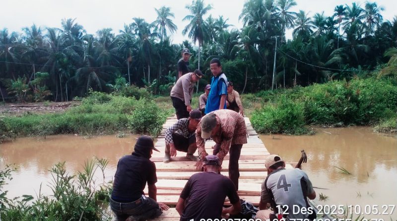 Kapolsek Kuala Jambi Pimpin Gotong Royong Perbaikan Jembatan Vital di Kampung Laut