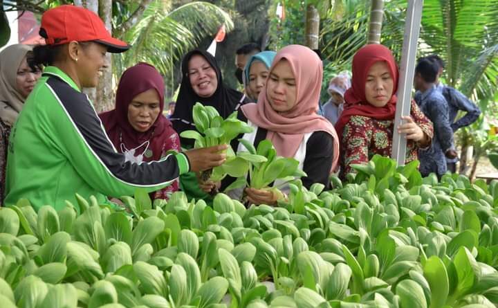 Pada kesempatan tersebut Hj. Armayanti juga meninjau hasil kebun dan usaha rumahan para kader TP PKK Desa Sumber Sari.