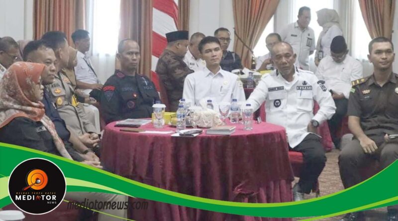 Penjabat (Pj) Bupati Merangin Jangcik Mohza, memimpin jalannya rapat koordinasi (Rakor) persiapan penyelenggaraan Pilkada Serentak 2024, di Auditorium rumah dinas bupati Merangin, Rabu (30/10)