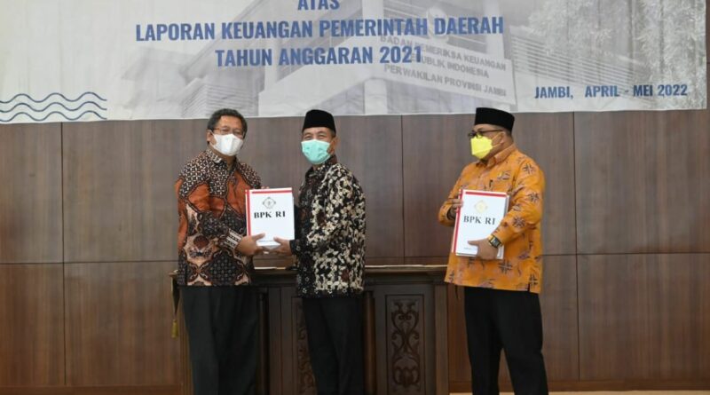 Penghargaan Opini WTP tersebut diterima bupati dari Kepala Perwakilan BPK Provinsi Jambi, Rio Tirta pada acara yang berlangsung di Aula Kantor BPK RI Perwakilan Jambi, Jumat (20/5/2022).