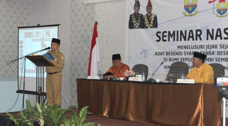 Lembaga Adat Melayu (LAM) Provinsi Jambi menggelar seminar masional “Menyusuri Jejak Sejarah Adat Bersendi Syara, Syara’ Bersendi Kitabullah, di Bumi Sepucuk Jambi Sembilan Lurah, bertempat di Shang Ratu Hotel, Senin (26/12/2022).