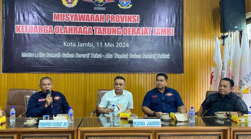 Pengurus Provinsi Keluarga Olahraga Tarung Derajat (Kodrat) Jambi melaksanakan Musyawarah Provinsi (Musprov) Tahun 2024 di Aula KONI Provinsi Jambi, Sabtu (11/05/2024)