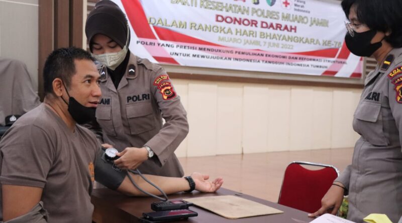 Jelang Hari Bhayangkara 1 Juli 2023 ke 76 Polres Muaro Jambi menggelar Kegiatan bhakti sosial donor darah.
