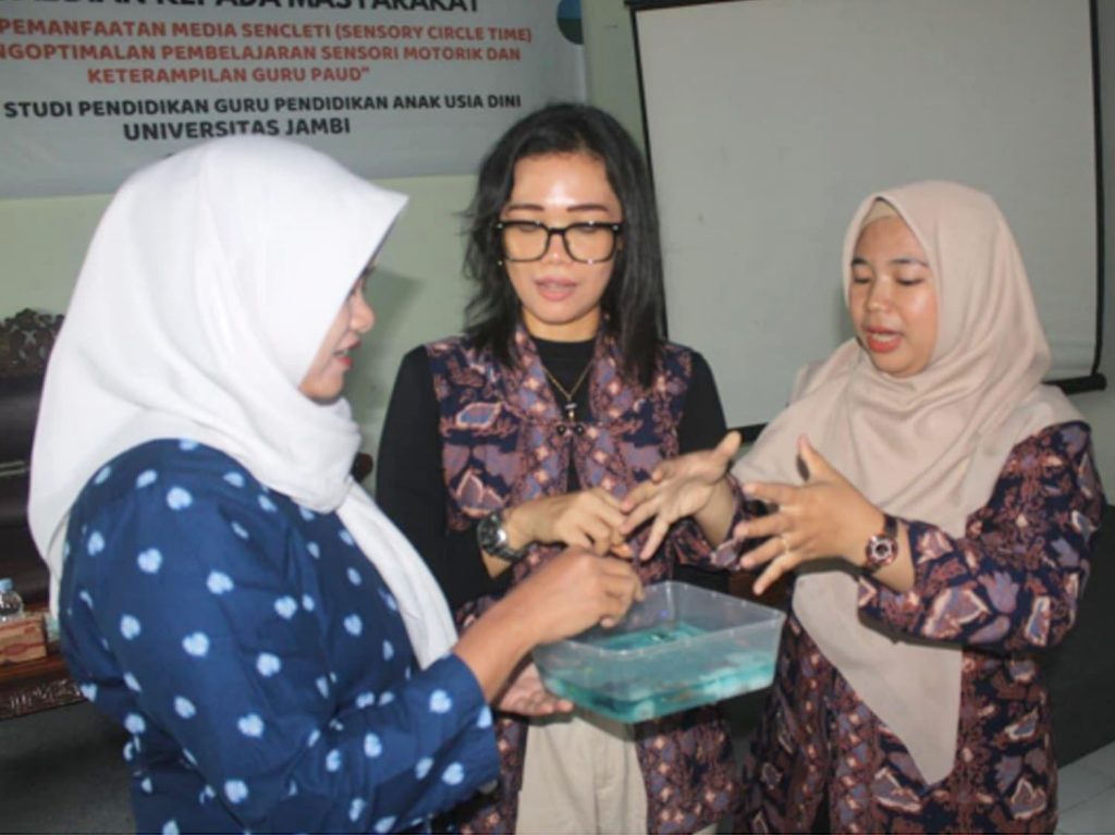 Program Studi Pendidikan Guru Pendidikan Anak Usia Dini (PG-PAUD) Universitas Jambi melaksanakan kegiatan Pengabdian kepada Masyarakat dengan tema “Pelatihan Pemanfaatan Media Sencleti (Sensori Circle Time) Dalam Pengoptimalan Pembelajaran Sensori Motorik Dan Keterampilan Guru PAUD”.