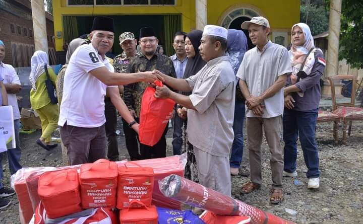 Pj. Bupati Tebo H. Aspan S.T. meninjau sekaligus menyerahkan bantuan kepada korban kebakaran di RT 06 Desa Teluk Lancang Kecamatan VII Koto, Minggu (03/07/2022).