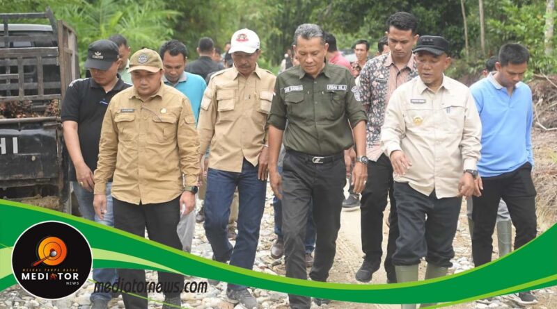 ‘’Jadi hari ini kita lakukan pengecekan pembangunan jalan produksi yang dibangun bersumber dari dana alokasi khusus di Desa Lubuk Bumbun Kecamatan Margo Tabir,’’ujar Pj Bupati didampingi Irban Wil 2 Inspektorat Merangin Aief Budiman.
