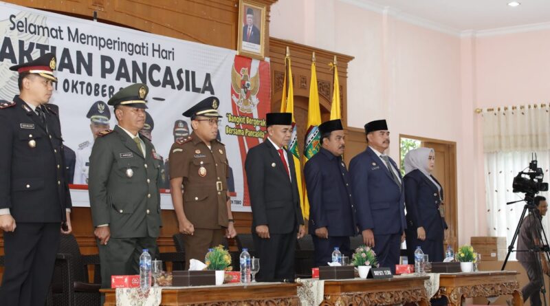 Pj. Bupati Tebo H. Aspan S.T. mengikuti pelaksanaan Upacara Peringatan Hari Kesaktian Pancasila Tahun 2022 secara virtual di Pendopo Rumah Dinas Bupati Tebo, Sabtu (01/10/2022).