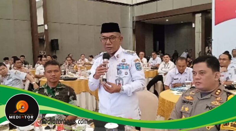 -Penjabat (Pj) Bupati Merangin Jangcik Mohza, memaparkan kesiapan Merangin dalam menggelar Pilkada Serentak 2024, di hadapan Pjs Gubernur Jambi Sudirman dan bupati/walikota pada Rakor Forkopimda se-Provinsi Jambi, Rabu (20/1).