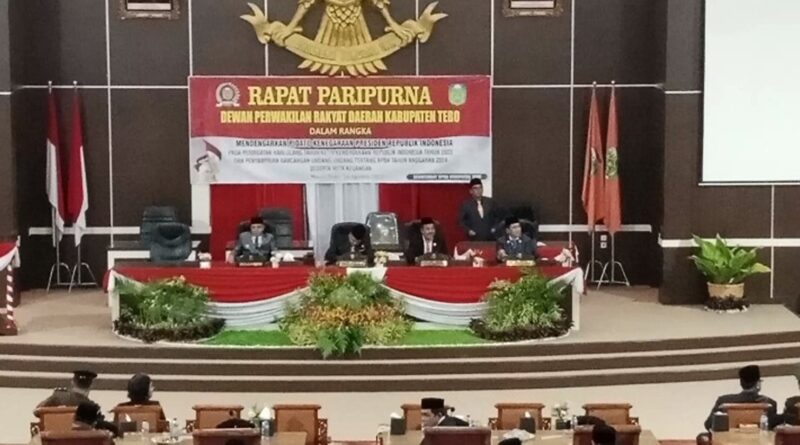 Paripurna tersebut dipimpin oleh Ketua DPRD Kabupaten Tebo, Mazlan, S.Kom, ME didampingi Wakil Ketua I, Aivandra, AB, Wakil Ketua II, DR. Syamsu Rizal, SE, M.Si, Sekretaris Dewan, Arif Haryoko SH, serta seluruh Anggota DPRD Kabupaten Tebo.