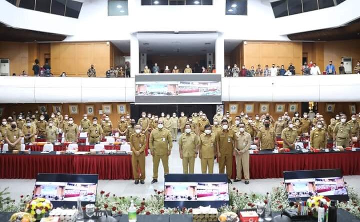Rakor penjabat Kepala Daerah dihadiri oleh 48 penjabat kepala daerah terdiri dari 5 Gubernur dan 43 Bupati / Walikota.