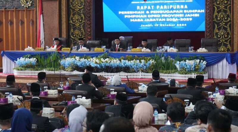 Dalam Rangka Pengucapan Sumpah/Janji Pimpinan DPRD Provinsi Jambi Masa Jabatan 2024-2029 bertampat di ruang Rapat Paripurna Gedung DPRD Provinsi Jambi, Sabtu (19/10/1024).